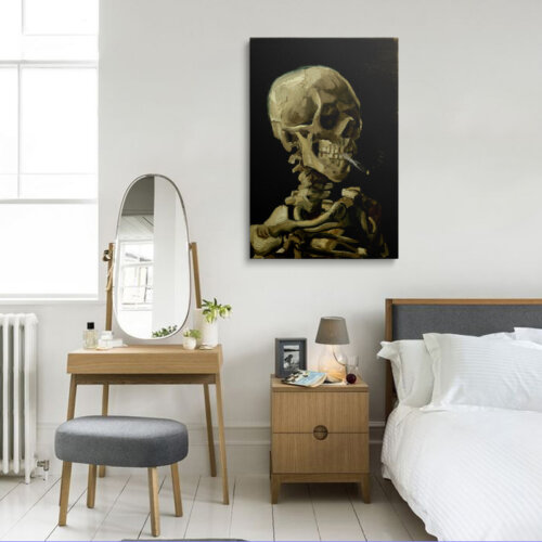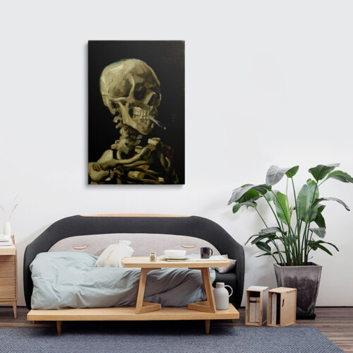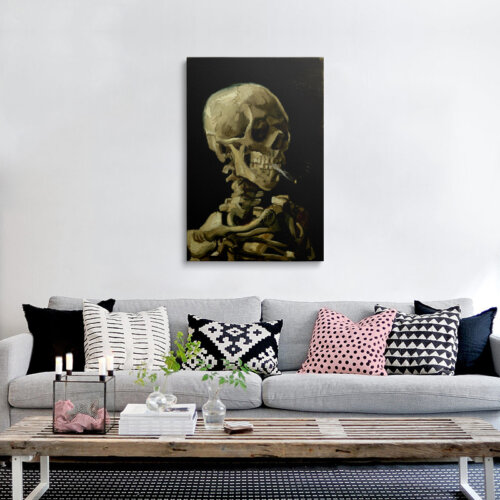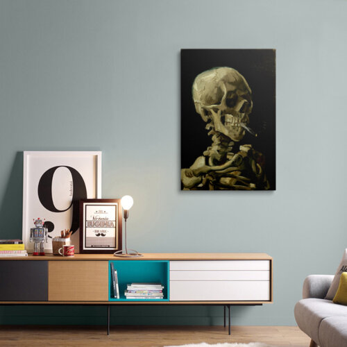 Skull Of A Skeleton With Burning Cigarette Canvas Wall Art