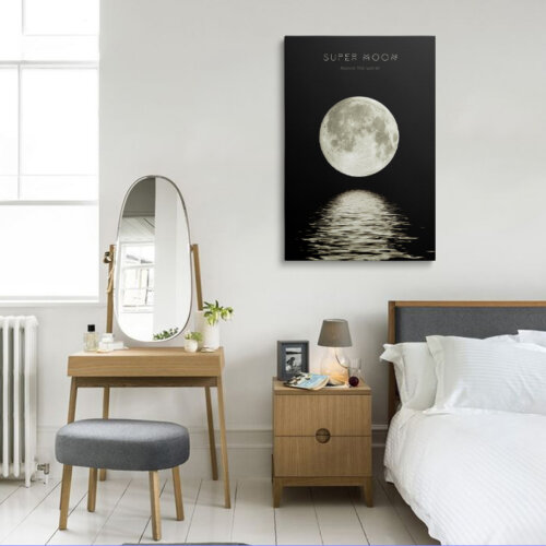 - Versatile Decor: Whether you’re looking to enhance your living room, bedroom, or office, the Super Moon Above The Water Canvas Wall Art seamlessly blends with various interior styles. Its versatile design complements minimalist, industrial, and eclectic decors, offering a unique artistic touch wherever it’s placed.